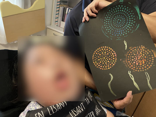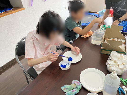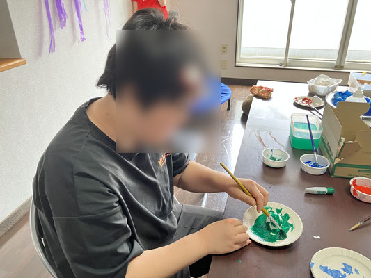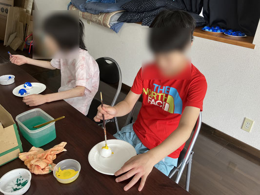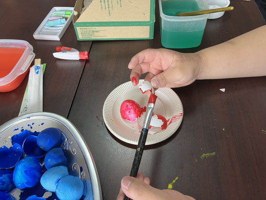 塗りにくいから殻をもって塗る子もいて、大丈夫かなと思っていましたがこれが上手。