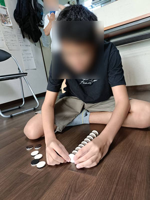 以前、ドミノをやって遊んでいたお友だちが、今度はオセロでドミノです。