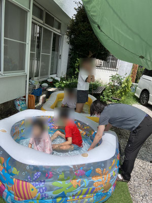 この夏定番となりましたビニールプール。そして市民プール。