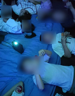 以前行った水族館のような映像をみんなで寝転んで見ました。