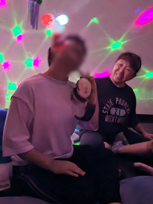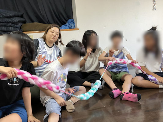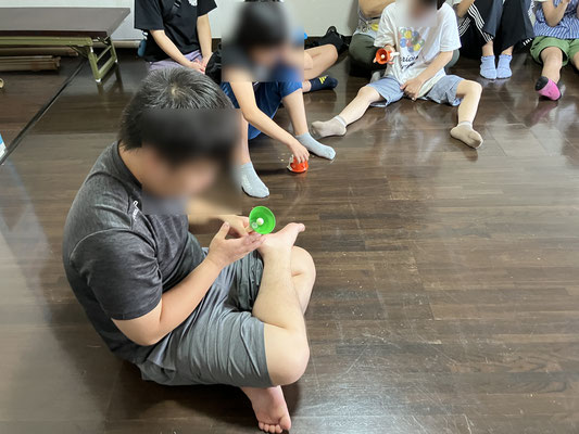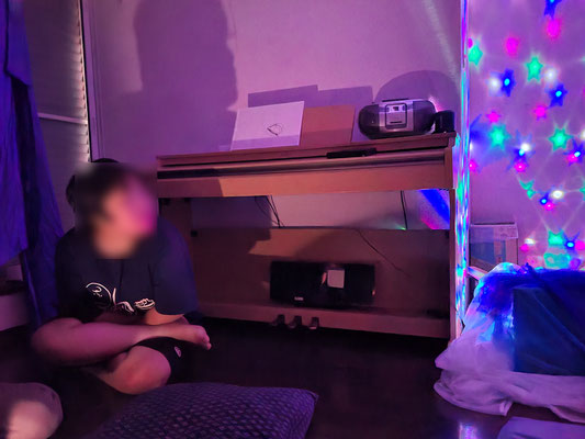 写真にはありませんが、光で遊ぶ前に軽くマッサージタイムがあります。