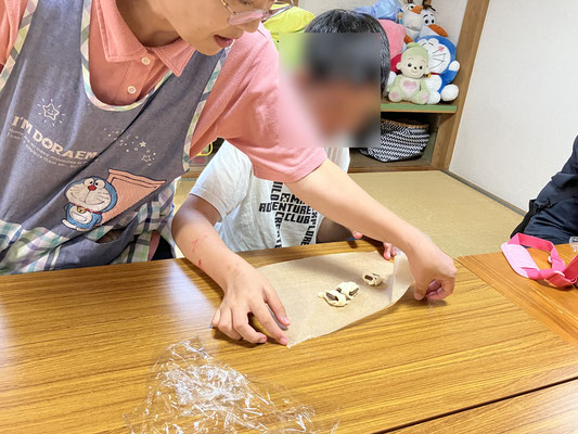 でも何とかチョコを巻き付け、スタッフに焼いてもらいます。